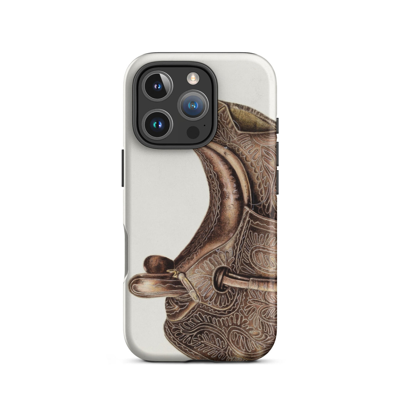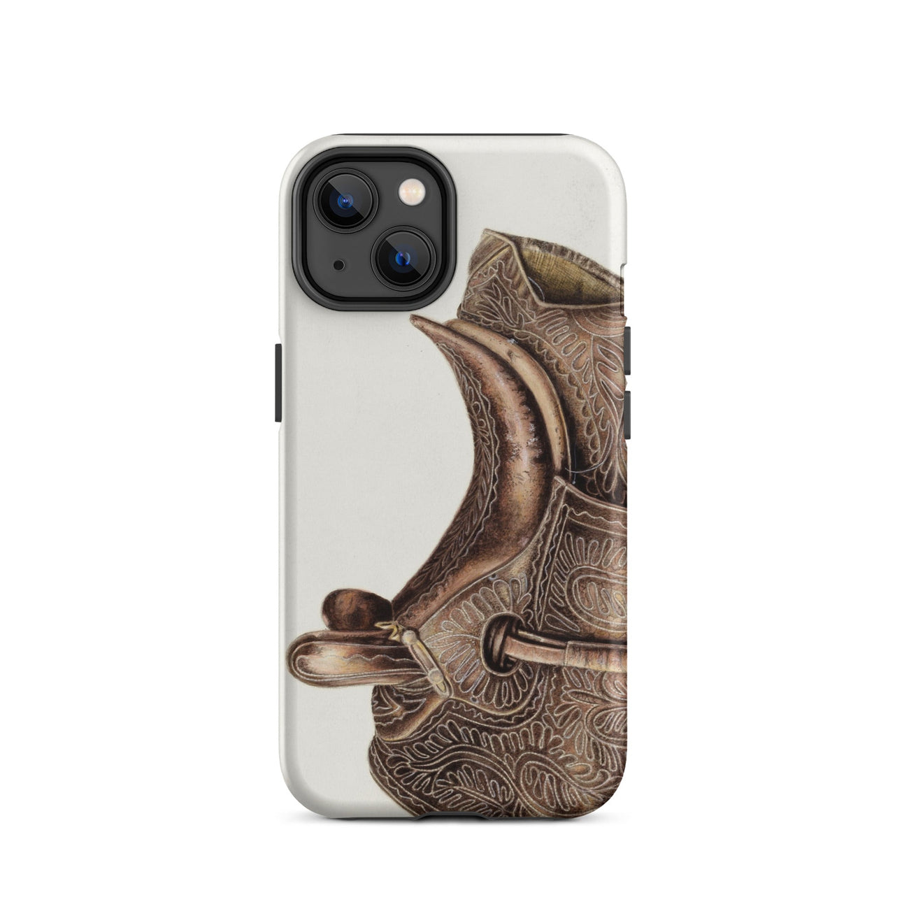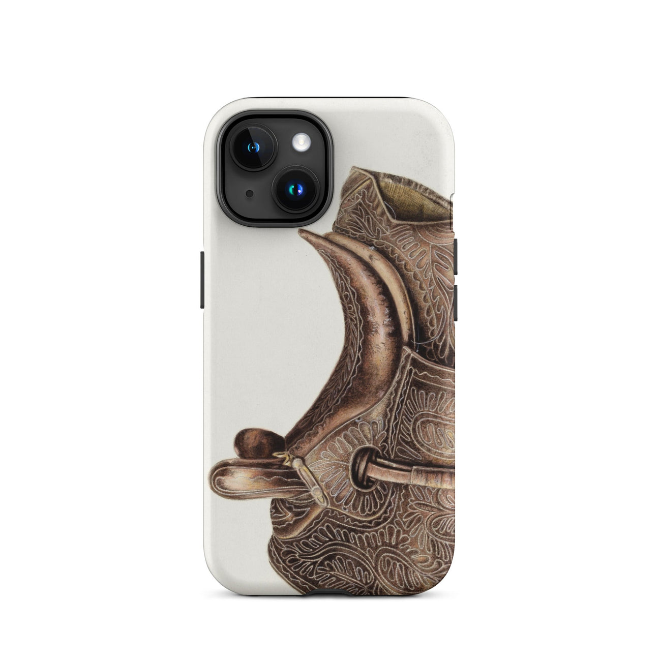 This iPhone case is a portal to equestrian heritage, where artistry meets tradition. Bertha Semple’s masterful depiction of an antique side saddle breathes life into equestrian tack design, every ornate leather engraving whispering of past rides and poised elegance.