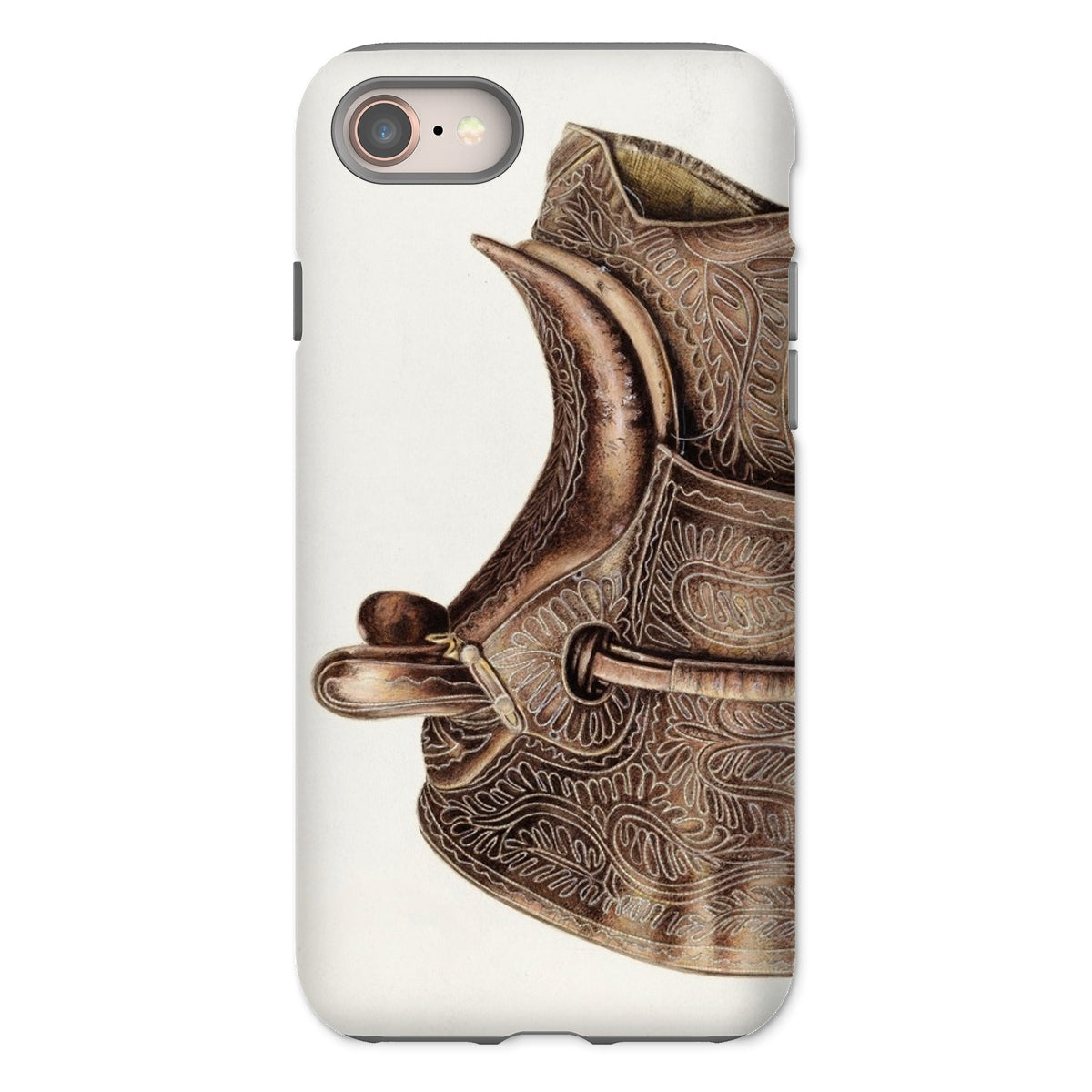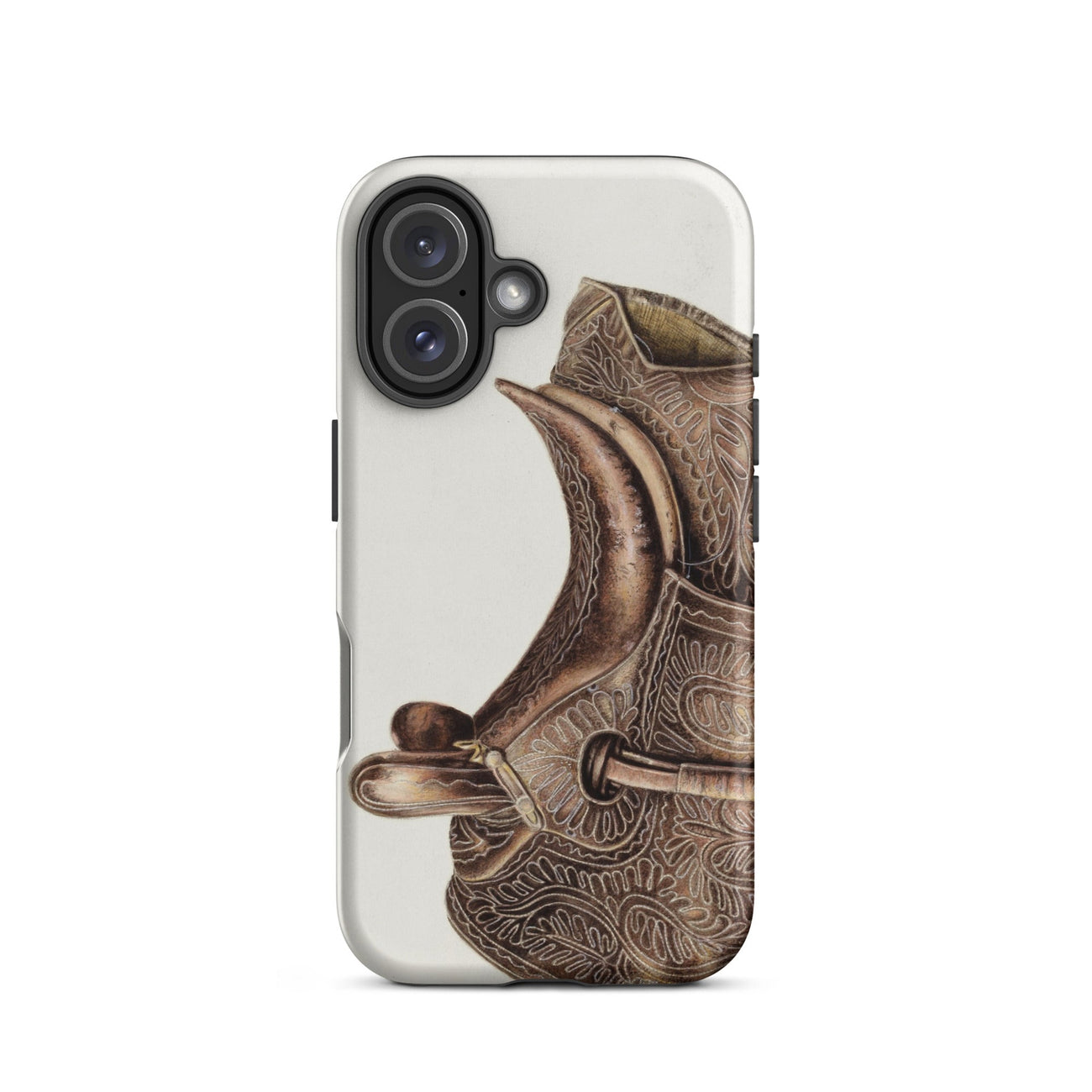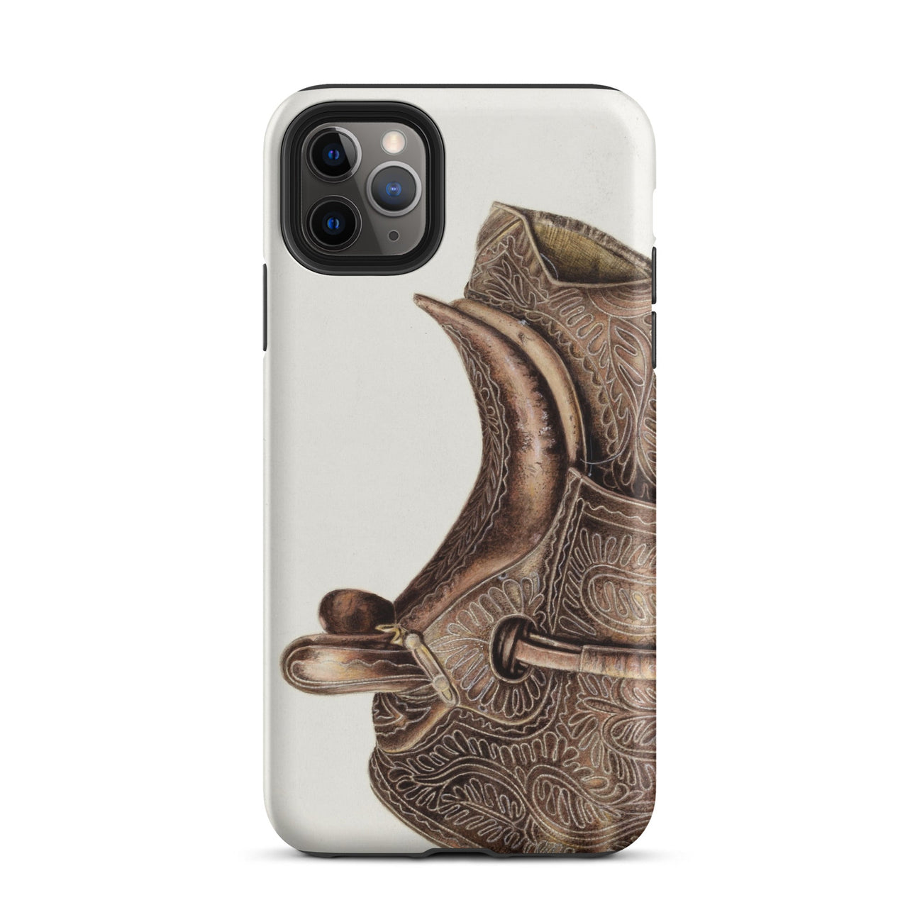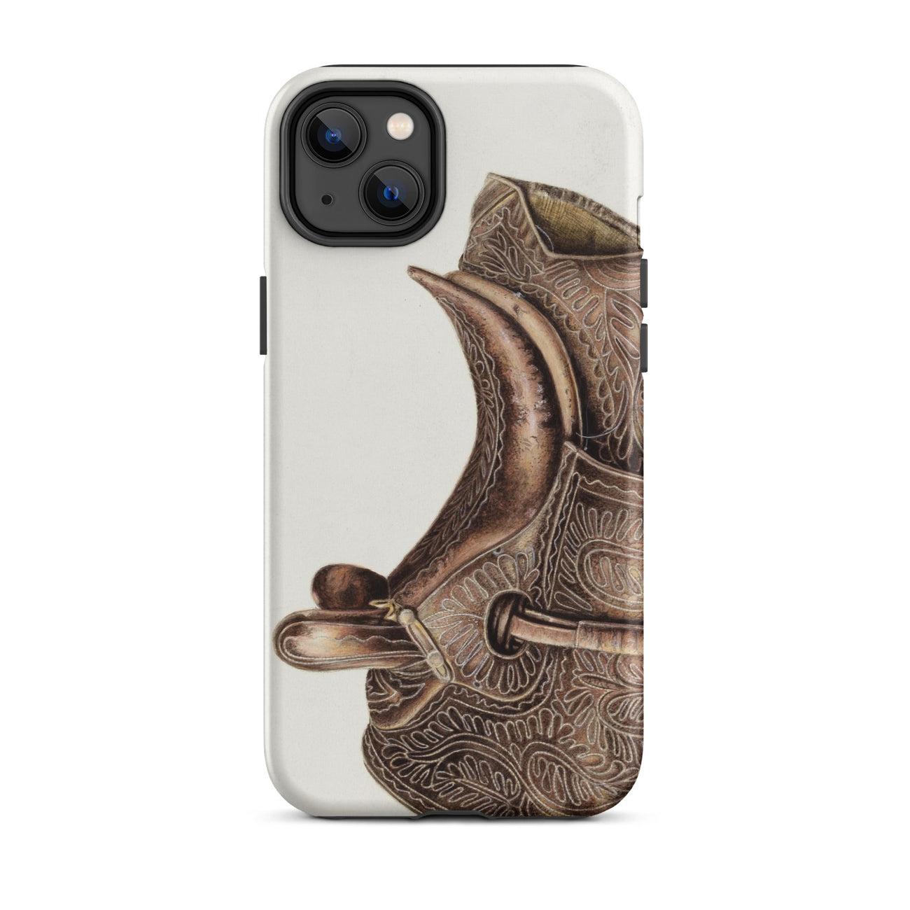This iPhone case is a portal to equestrian heritage, where artistry meets tradition. Bertha Semple’s masterful depiction of an antique side saddle breathes life into equestrian tack design, every ornate leather engraving whispering of past rides and poised elegance.