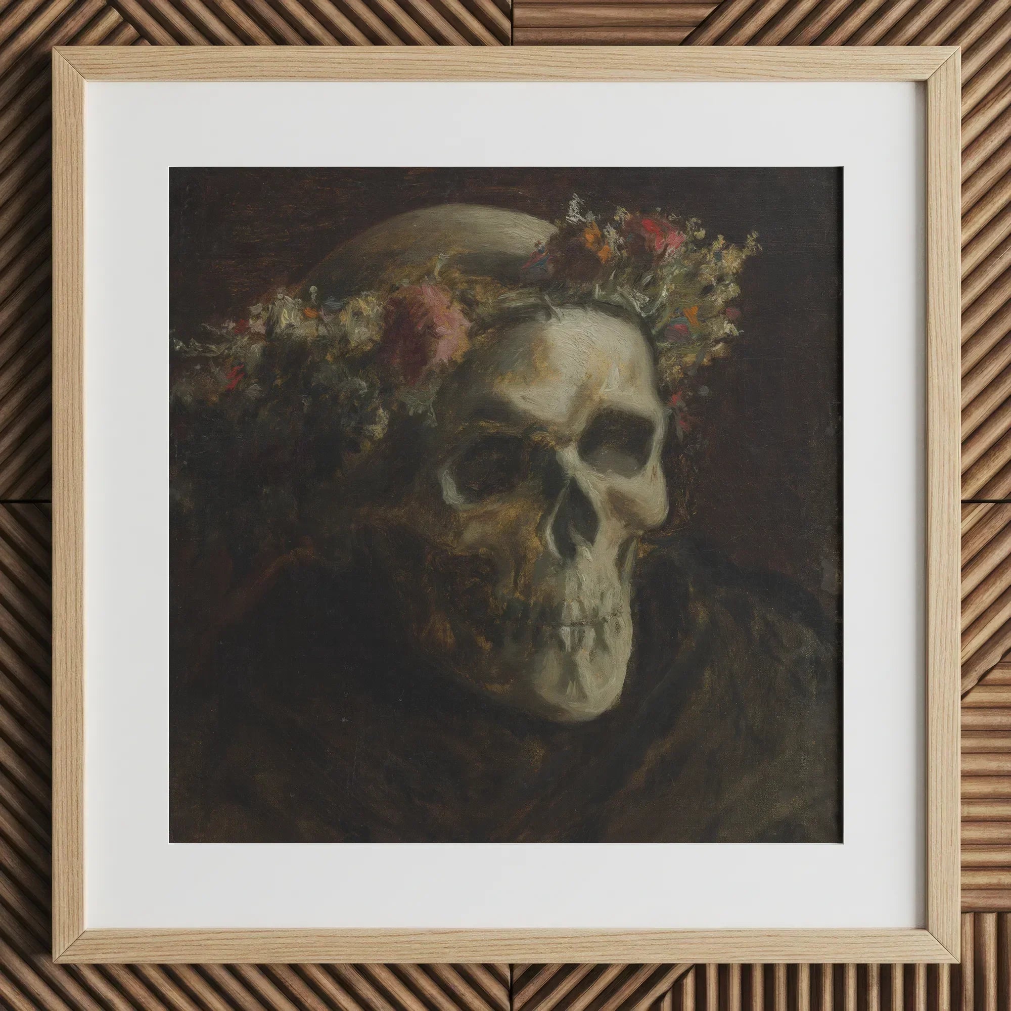 Skull Wearing a Wreath of Flowers - Thomas Satterwhite Noble Art Print