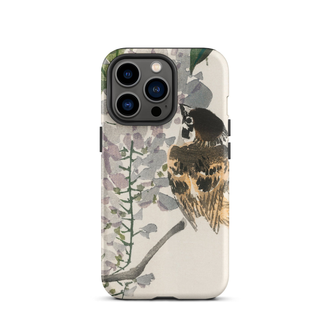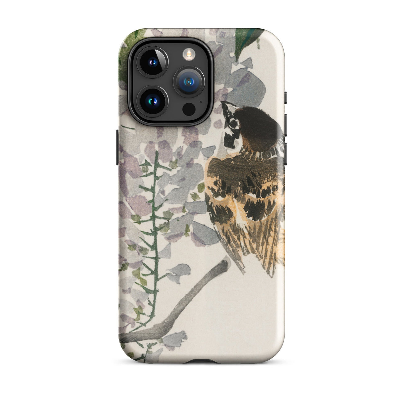 You'll cradle a slice of Meiji-era Japan in your palm with this iPhone case. Kōno Bairei's brushstrokes will transform your device into a portal of avian artistry. A gorgeous sparrow, feathers stippled in sienna and umber, perches amid a cascade of wisteria blooms. Delicate petals, rendered in gossamer grays and lilacs, frame the bird's vigil.