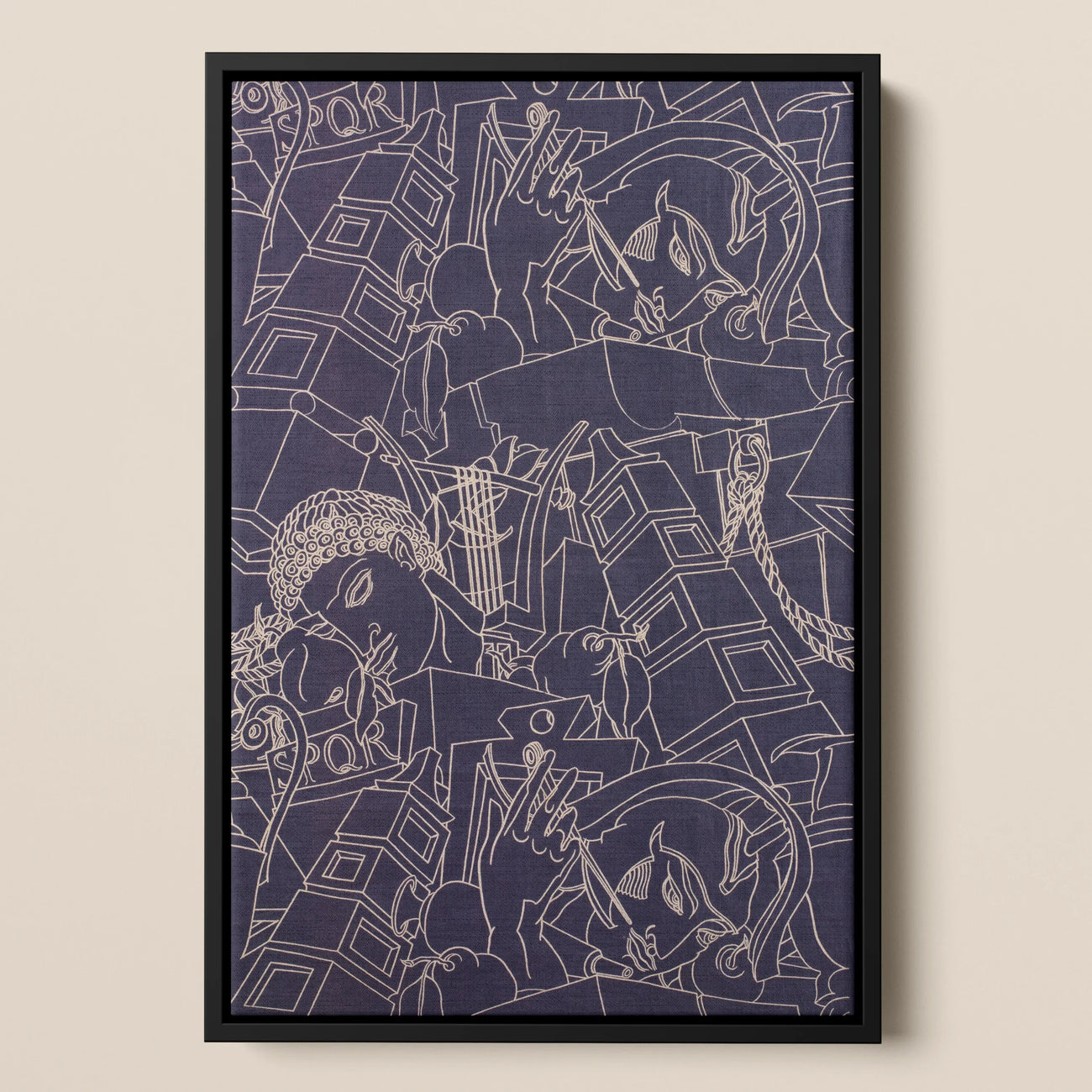 Get lost in the captivating world of Victor Proetz's SPQR art framed canvas. This mesmerizing print transports you to a realm where classical antiquity collides with modernist design. Proetz, the St. Louis-born visionary, masterfully weaves a tapestry of fragmented statues, lyres, and amphoras into a dynamic pattern that pulsates with life.