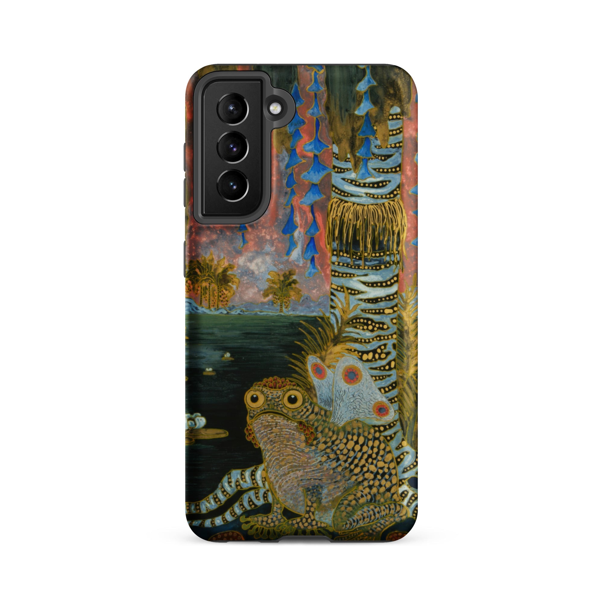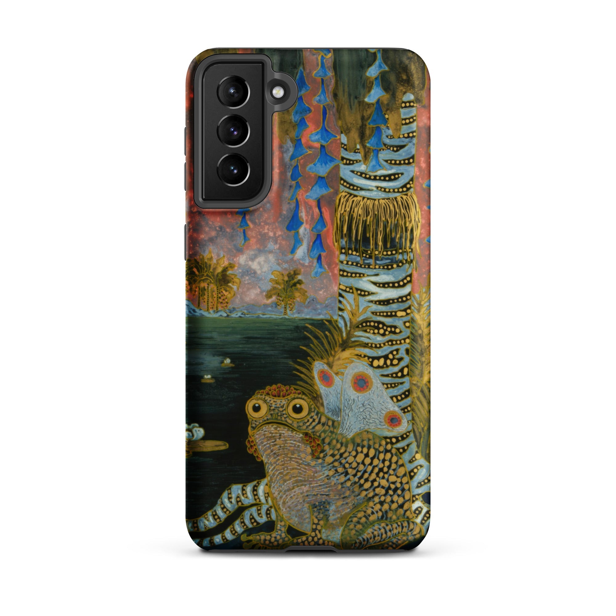 The background of this Samsung case reveals tranquil palms glowing against a lagoon, where drifting lily pads catch fading light. Wings sprout from the creature’s back—neither insect nor angel, but something stranger, born of Symbolist vision and Central European modernism.