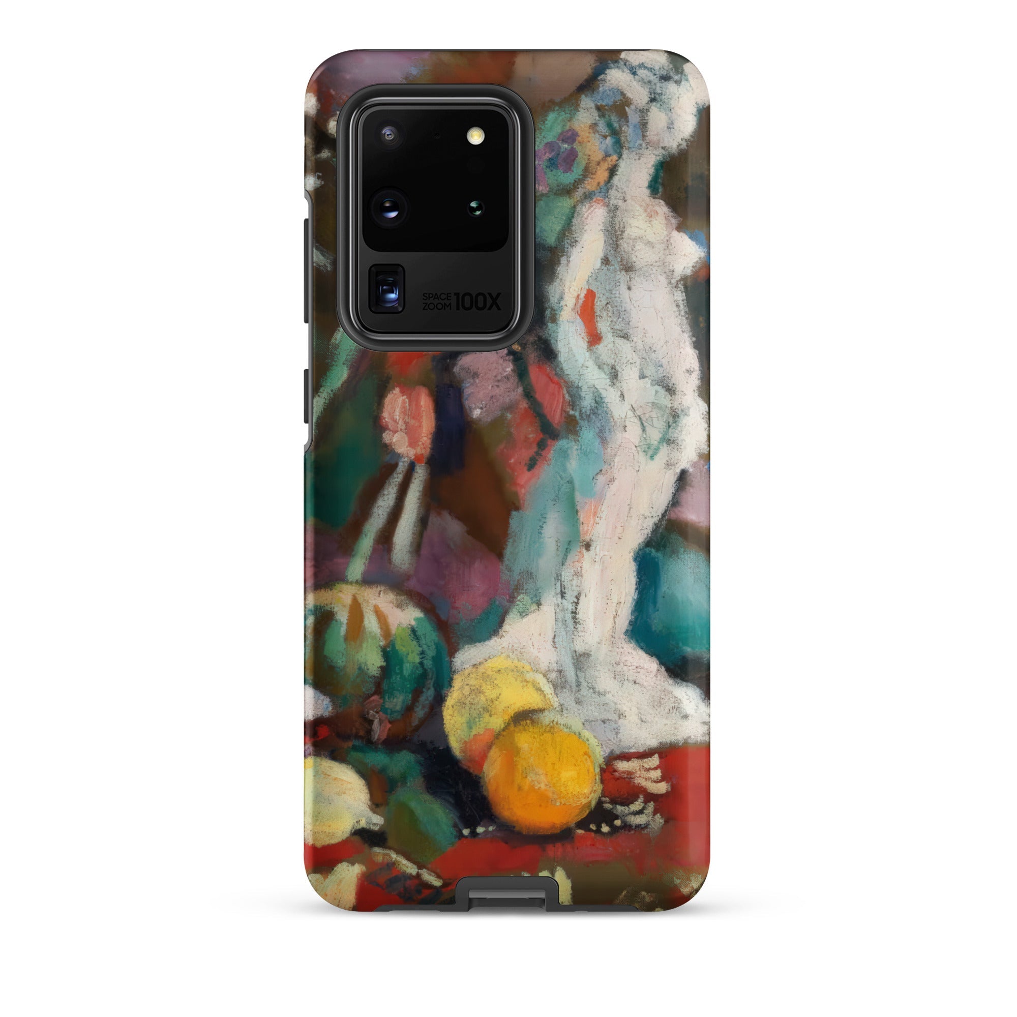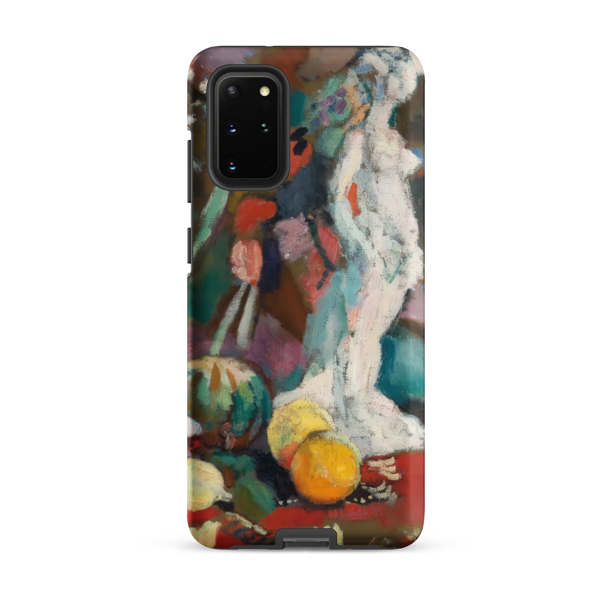 The plaster figure anchors the whirl, luminous against a backdrop where tablecloth becomes horizon, and shadow behaves like pigment set free. This Samsung case transforms that 1906 still life into a handheld gallery. Wrapping your device in the tactile immediacy of oil paint, the optical thrill of color pushed to its edge, and the historic charge of Matisse’s early experiments with form, depth, and the sensual tension between object and space.