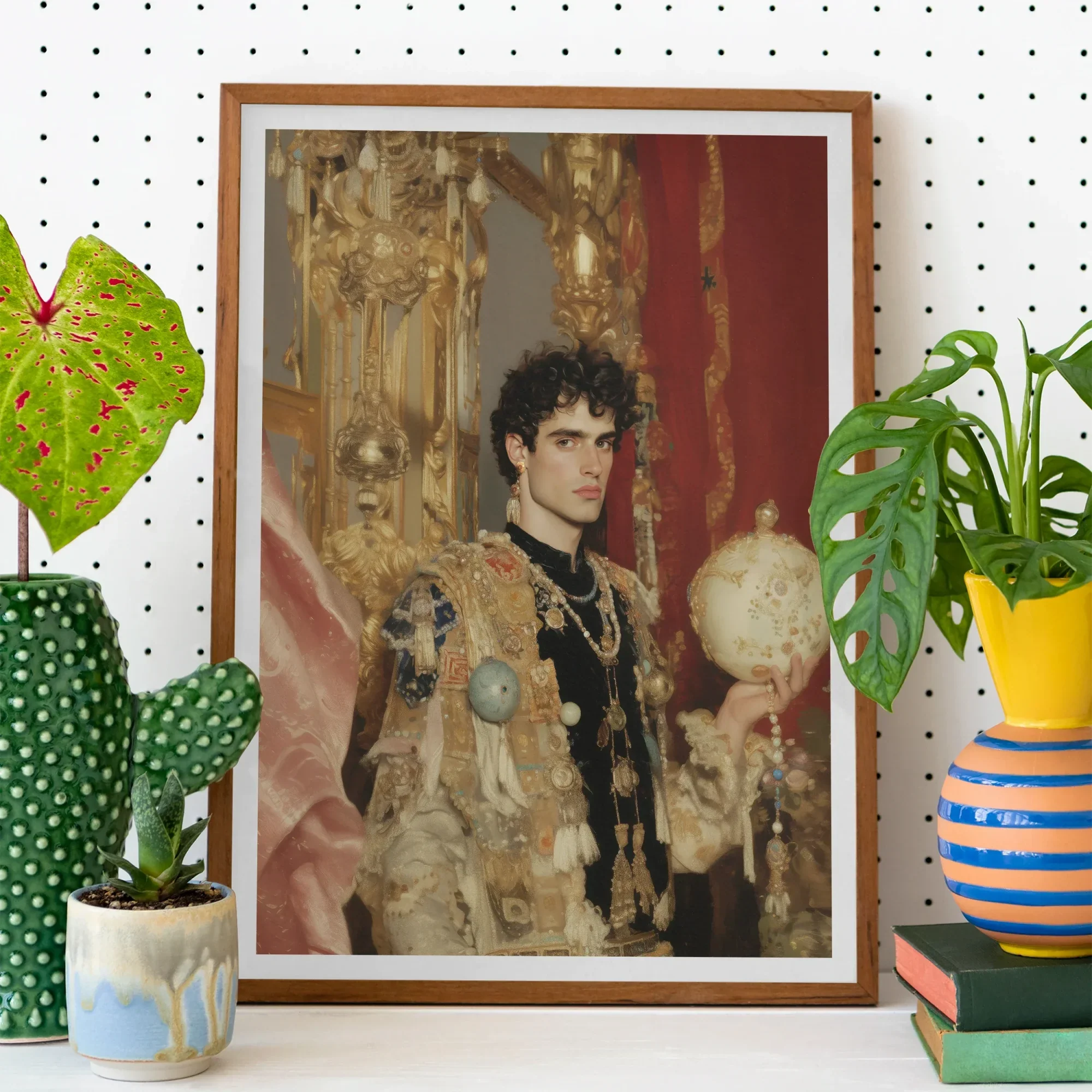 You feel his power, the elegance tinged with defiance, as if silenced voices find resonance in his stare. Hang Suleiman on your wall, and let this gay sovereign stare back, reminding you queerness has always held court in worlds that tried to erase it.