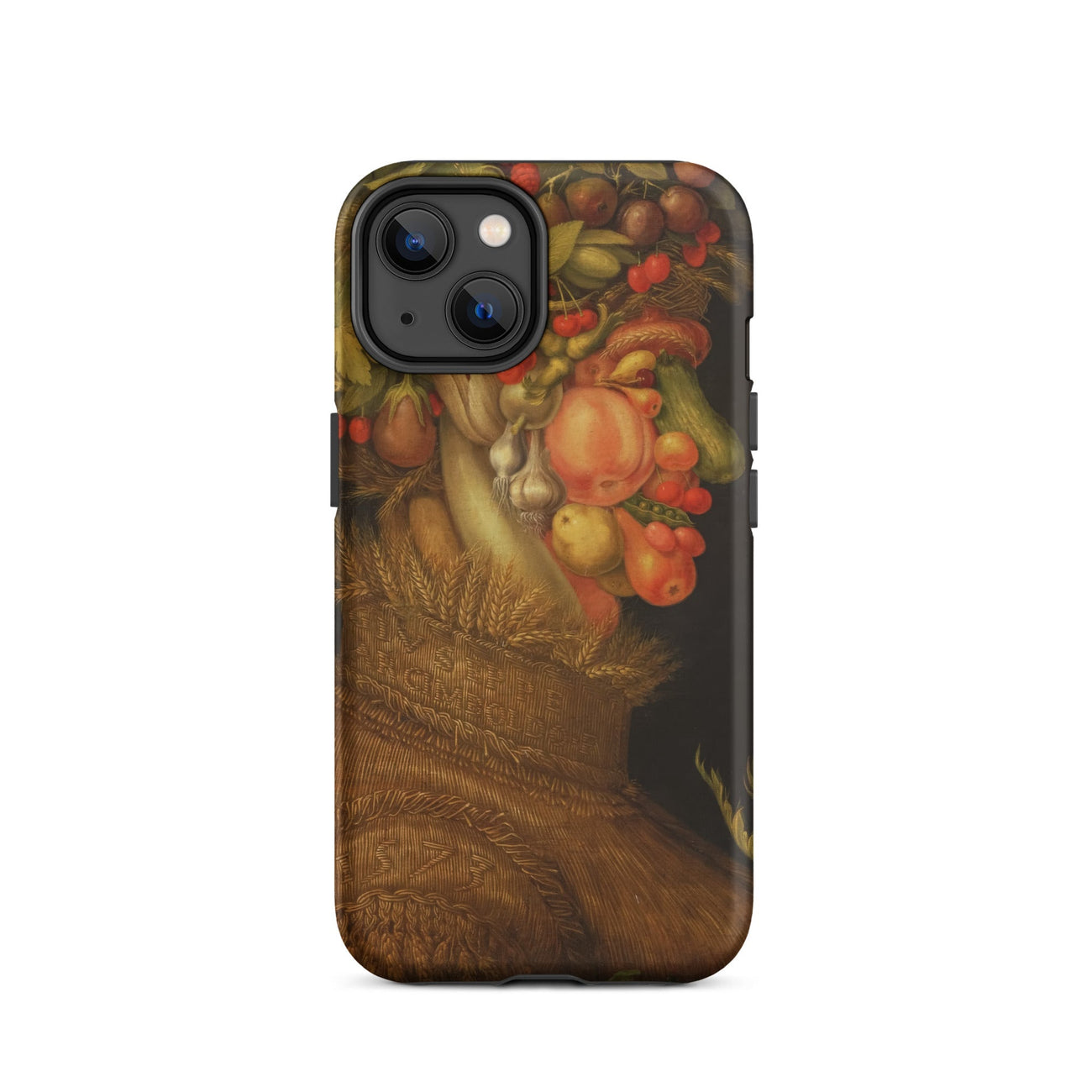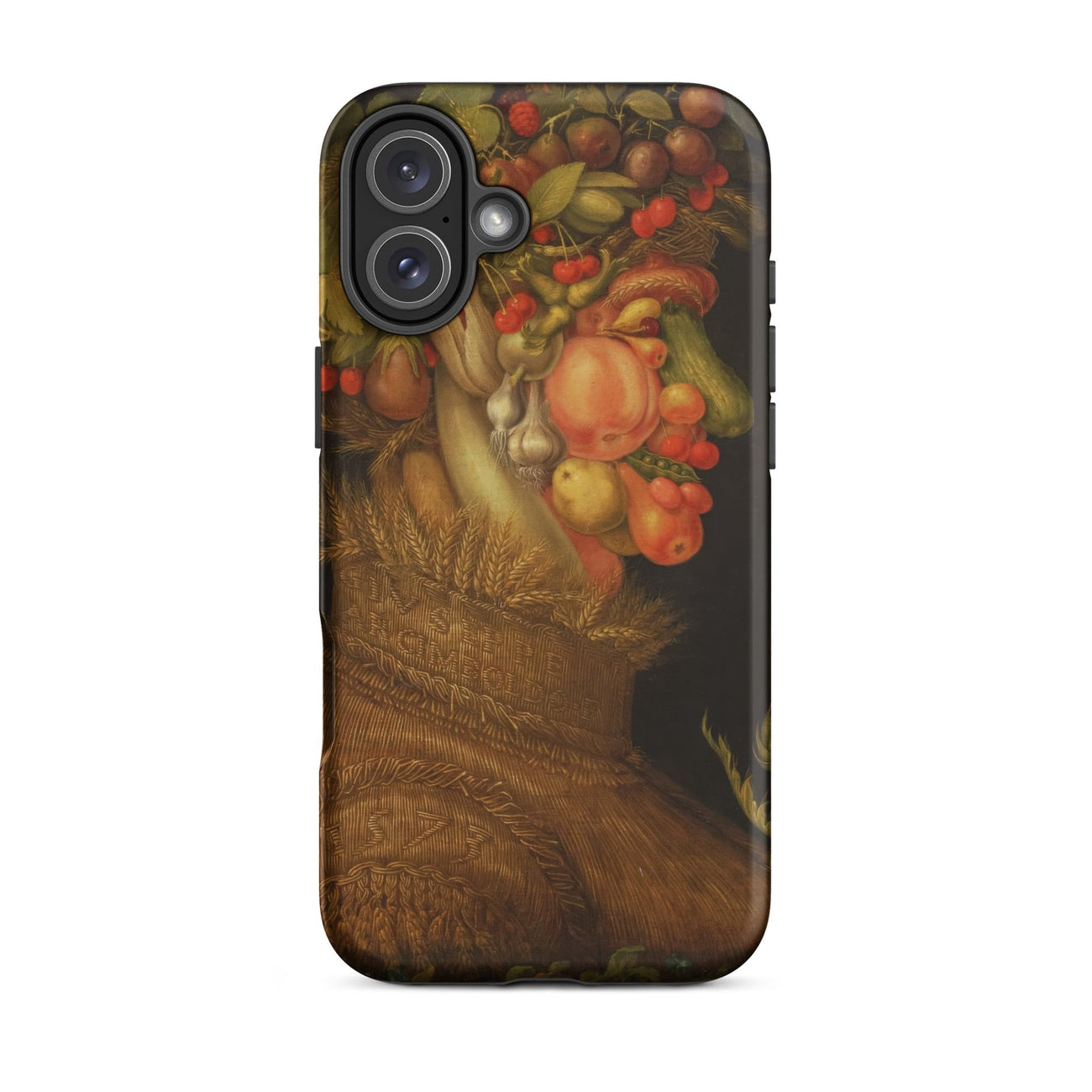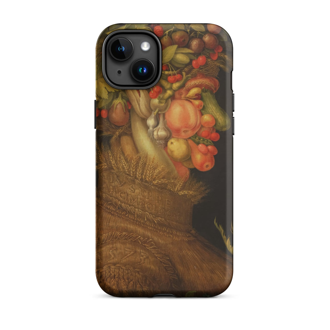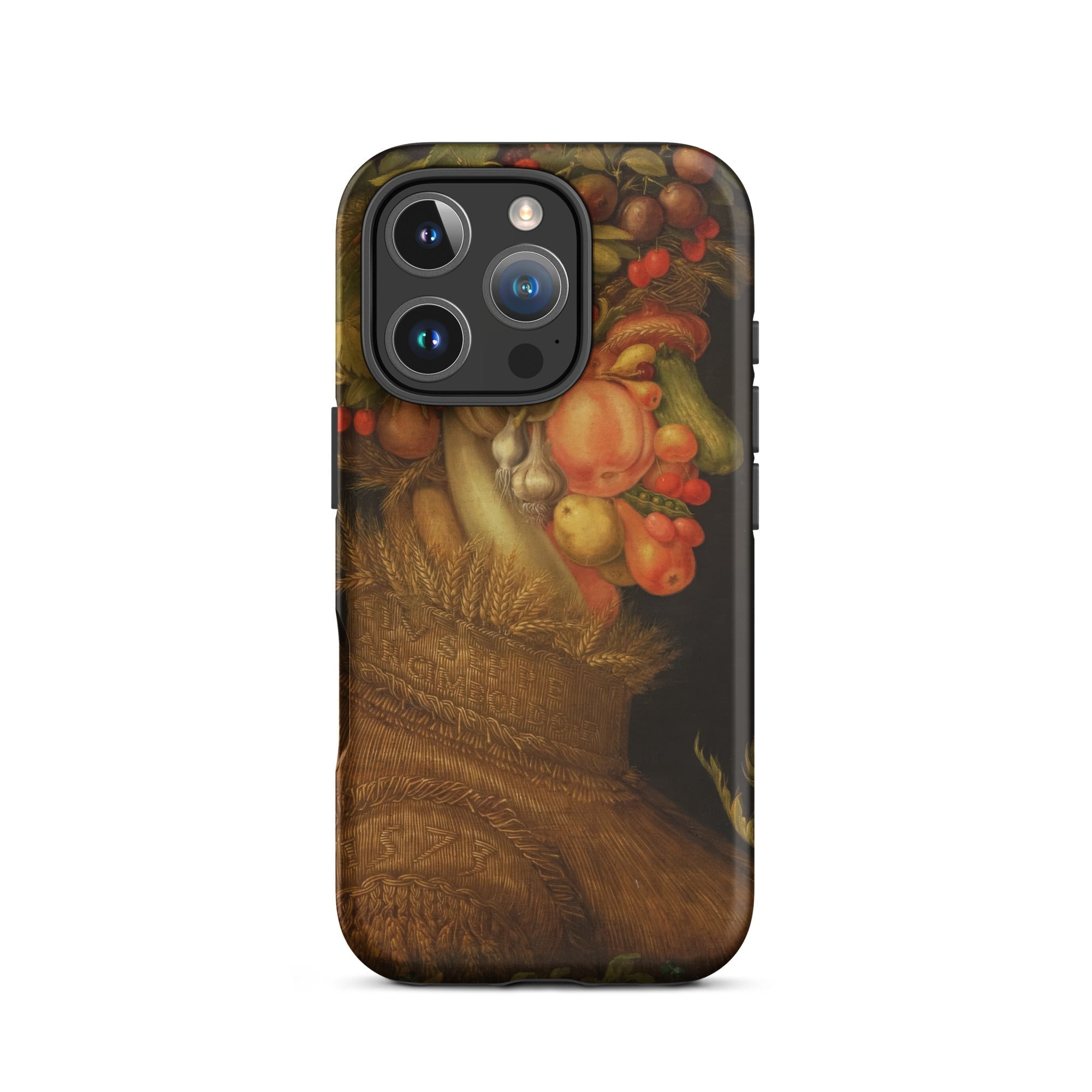 Arcimboldo’s Summer bursts across this iPhone case with ripe peaches, blushing cherries, swollen cucumbers, bulbous onions, and wheat sheaves stitched into the woven chest. Every detail glows with sixteenth-century Milanese ingenuity, where portraiture and still life fold into one eccentric vision.