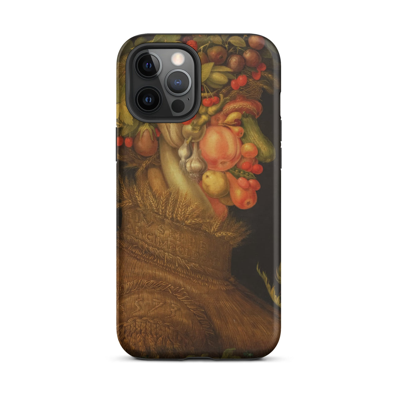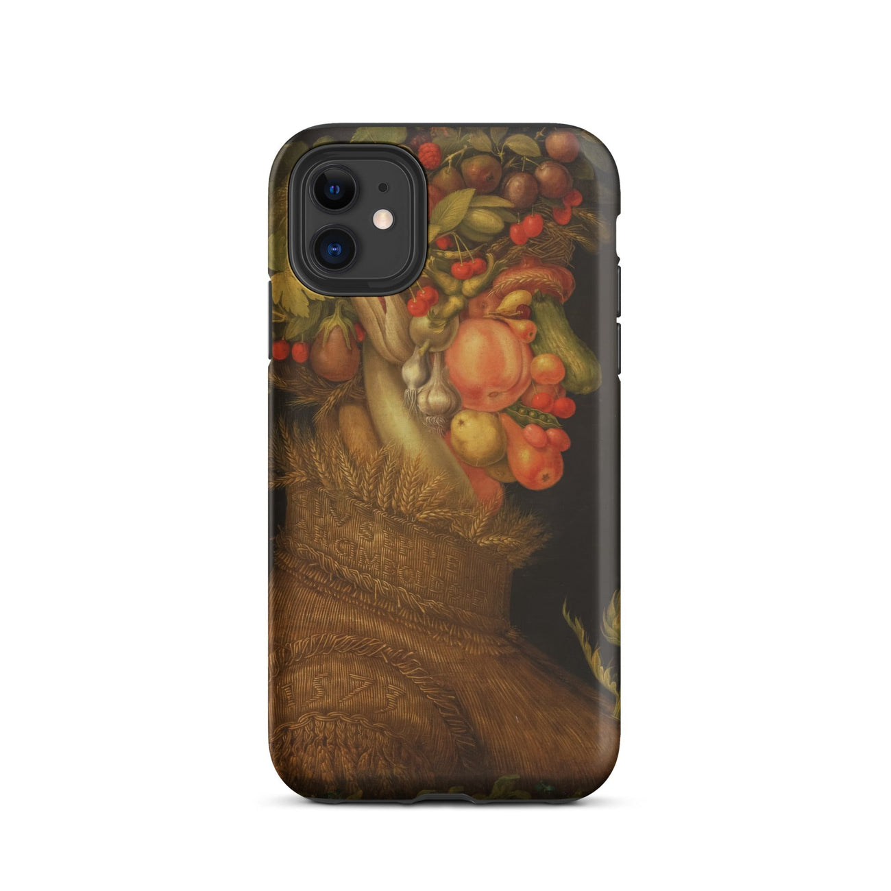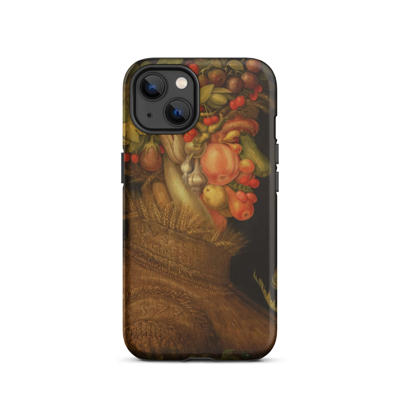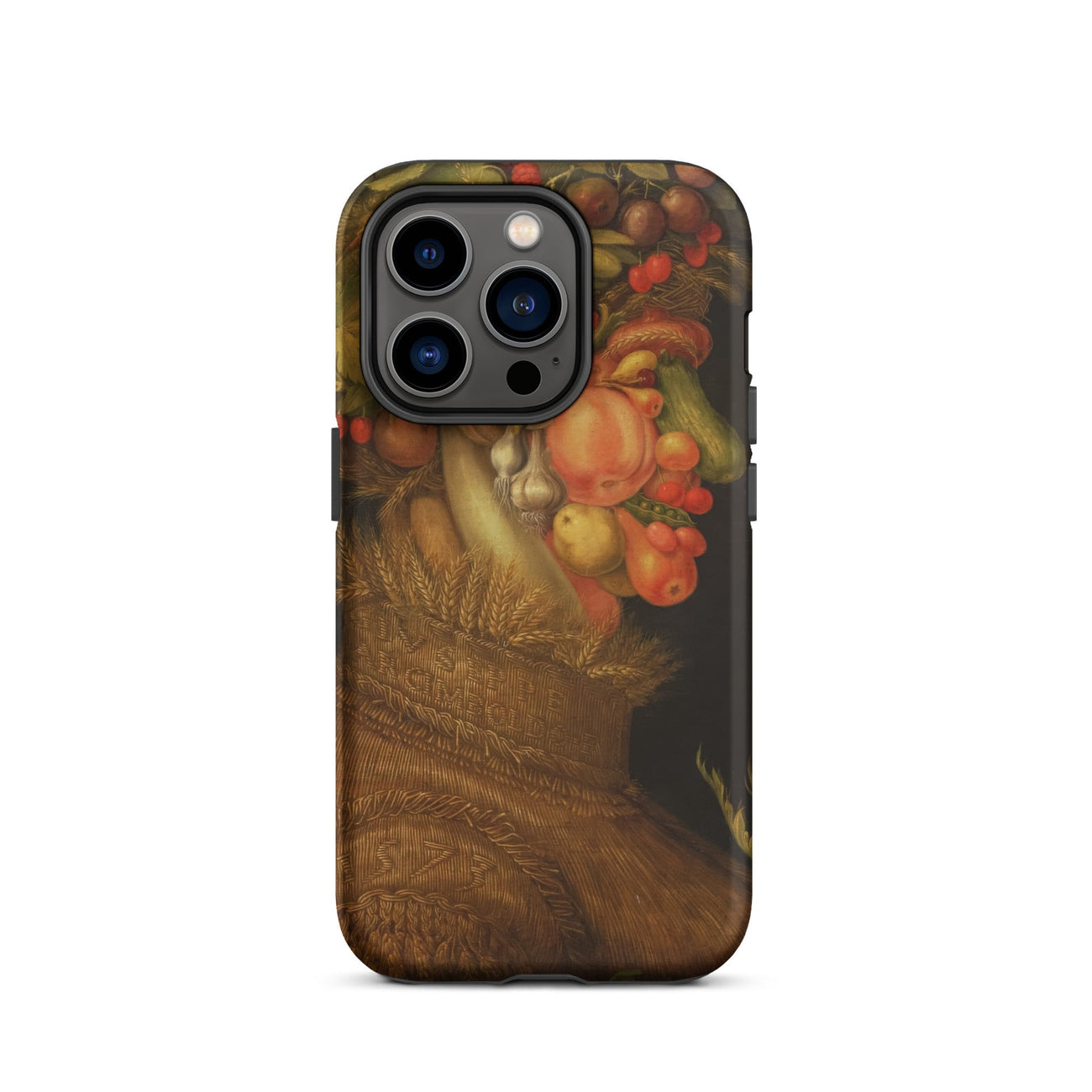 Arcimboldo’s Summer bursts across this iPhone case with ripe peaches, blushing cherries, swollen cucumbers, bulbous onions, and wheat sheaves stitched into the woven chest. Every detail glows with sixteenth-century Milanese ingenuity, where portraiture and still life fold into one eccentric vision.