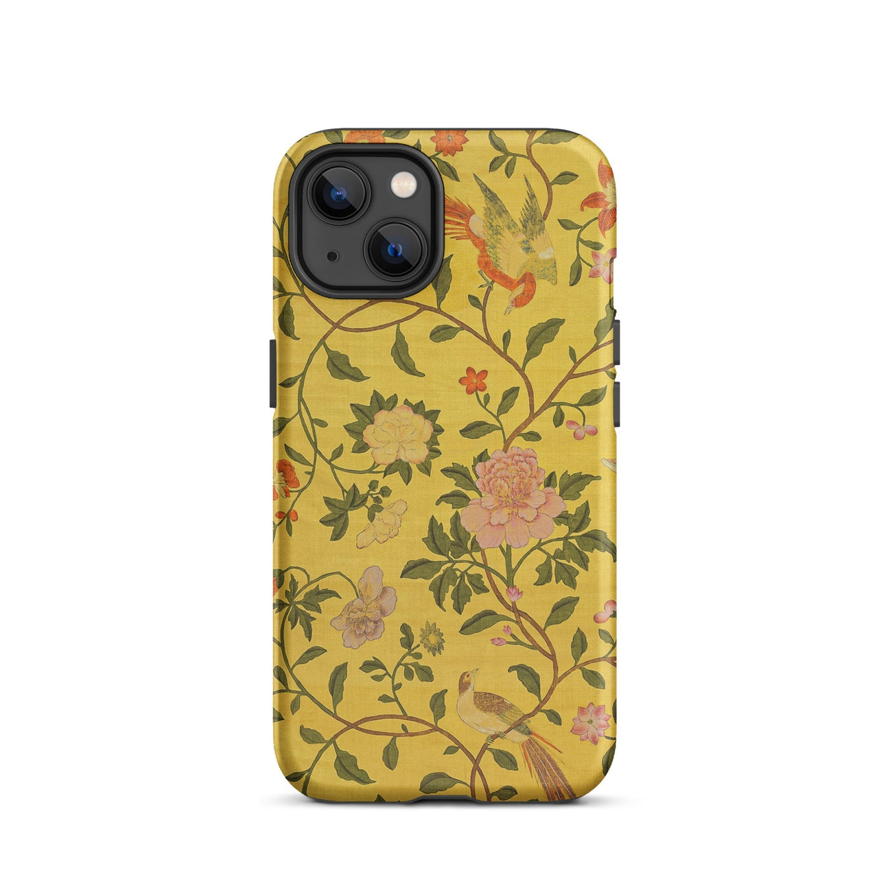 A golden hush, a symphony of silk—this Sweet Summer iPhone case cradles the lingering echoes of an imperial past, where the bird-and-flower tradition (花鸟纹, huāniǎo wén) unfolds in delicate arabesques, each branch a passage from a forgotten courtly poem.