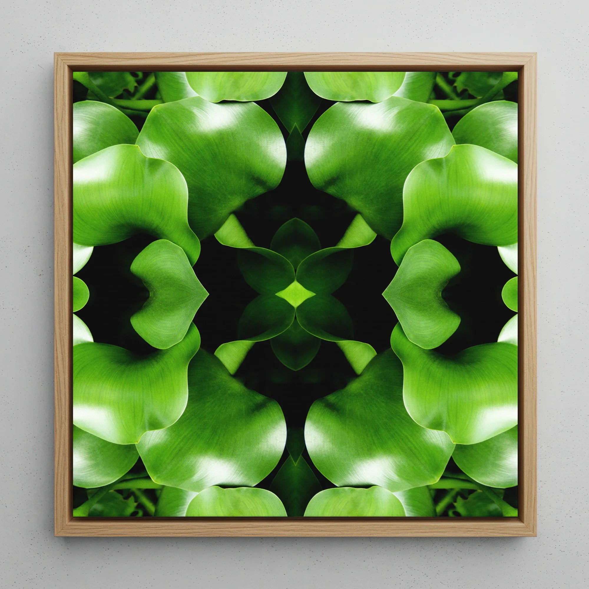 Delve into a verdant vortex with this mind-bending botanical op art print. You'll find yourself hypnotized by the kaleidoscopic dance of emerald leaves, their organic curves forming an intricate geometric symphony.