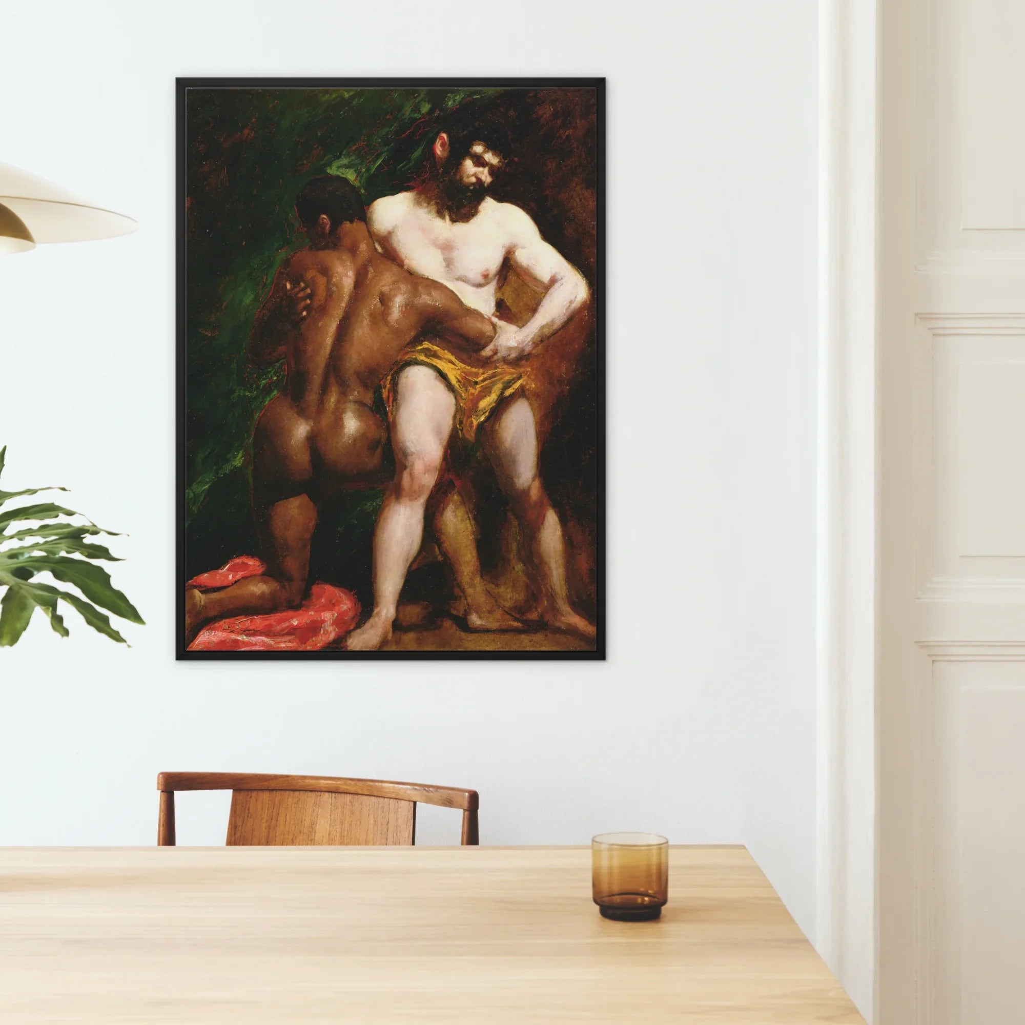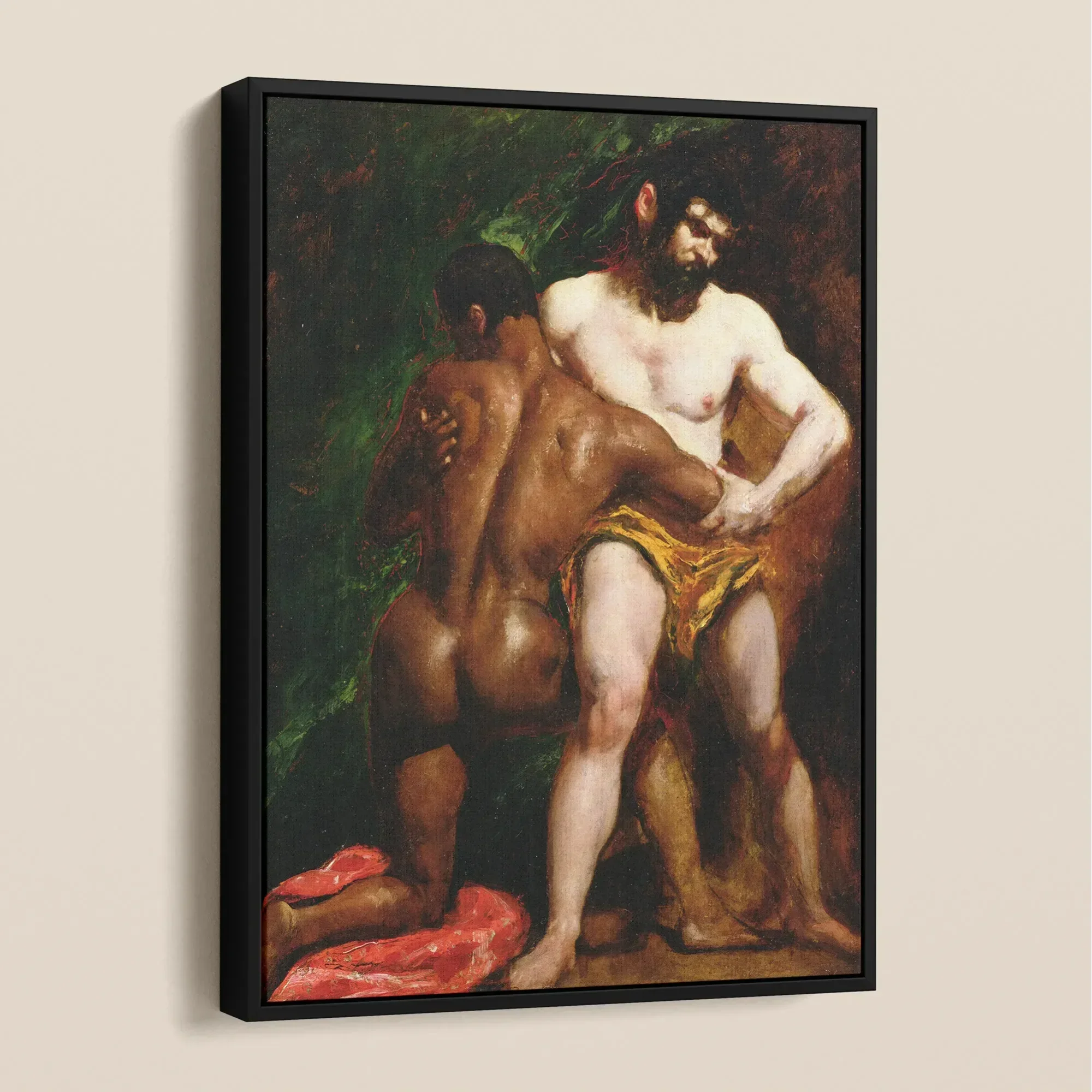 The Wrestlers - William Etty Homoerotic Framed Canvas