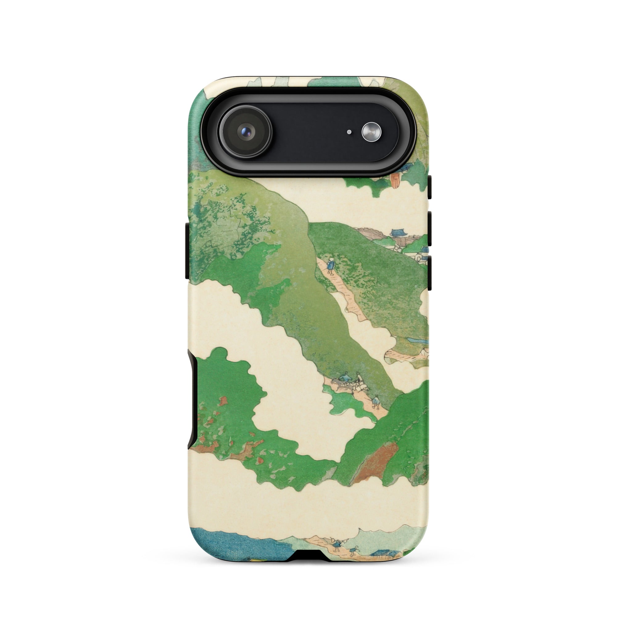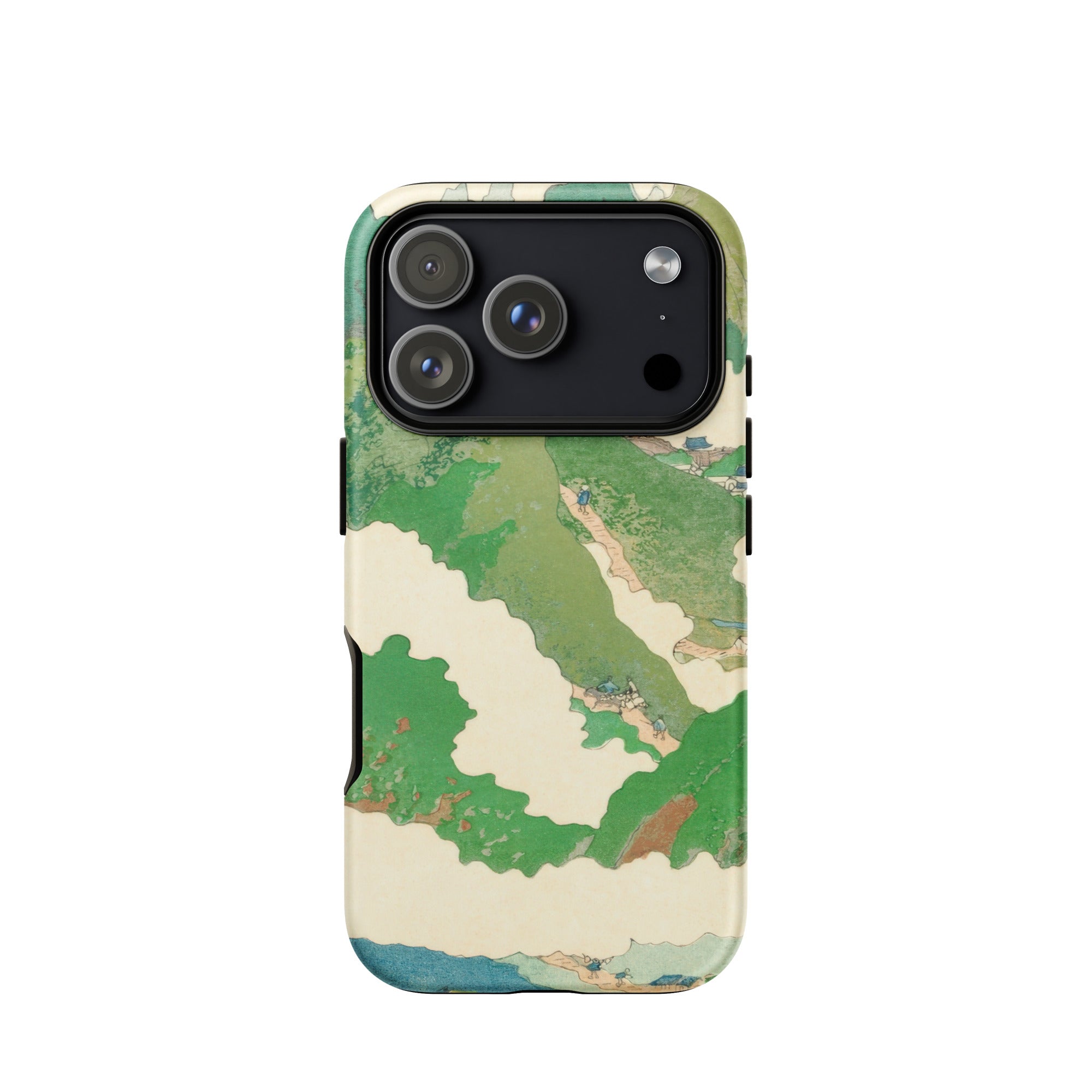 Ink was water once. Paper was forest. And now they've transformed again into armor for glass and circuitry. Each gentle bend, every gradation of moss-green to bottle-glass turquoise, distills the logic of Qing-era terrain painting into portable, pixelated form.