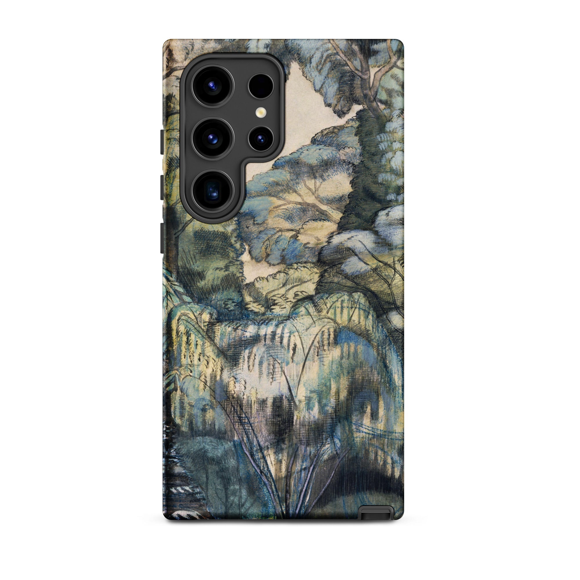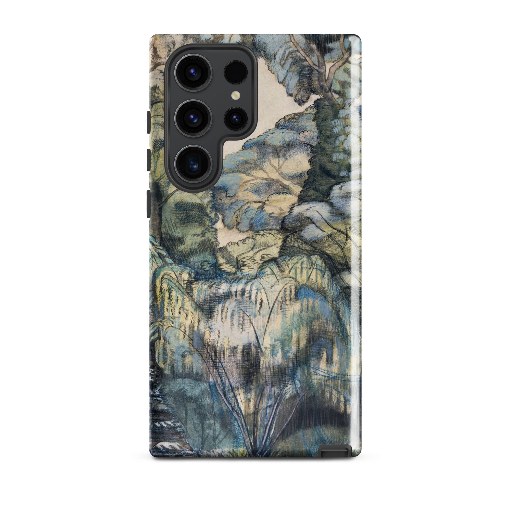 The Buckinghamshire estate becomes a threshold—half-observed garden, half-imagined realm. His Neo-Romantic eye transfigures provincial scenery into mystic terrain, where every branch-splay and leaf-shadow speaks the quiet dialect of English visionary watercolor practice.