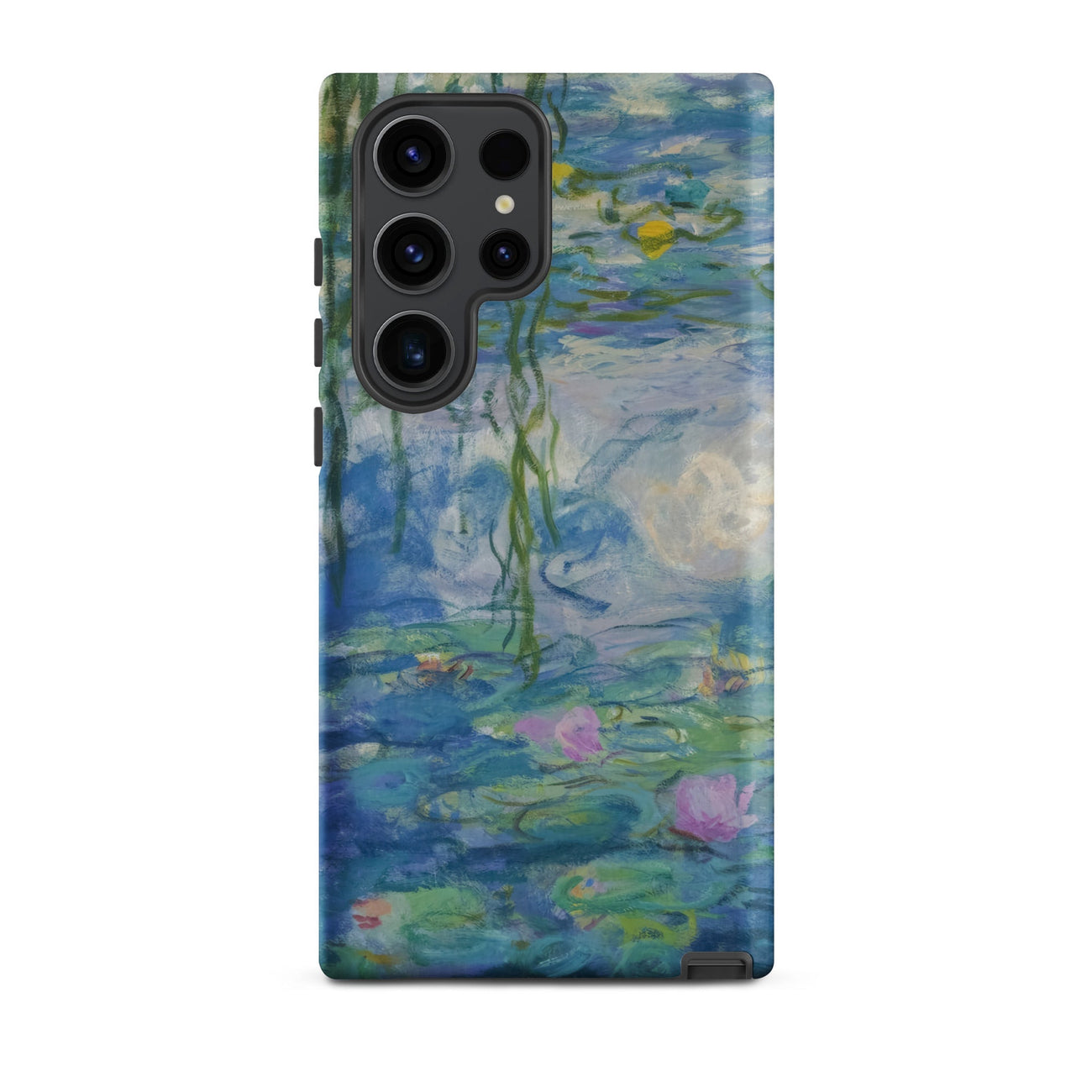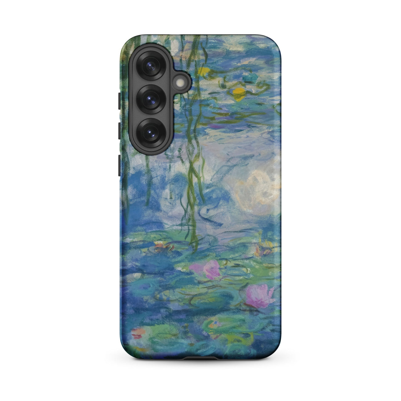 Here, your Samsung becomes Monet’s pond: violet petals open across aquamarine pools, their edges blurred by swirls of ultramarine and emerald. Slender reeds tumble downward, faintly obscuring a pale orb of reflected sky. The surface shifts between translucence and opacity, a study in light’s constant betrayal.