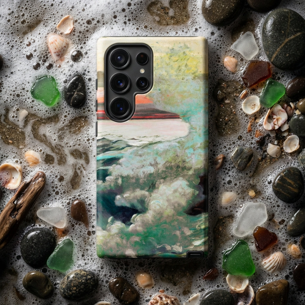 At West Point Prouts Neck (1900), where the North Atlantic meets the Maine granite, Winslow Homer fixed his gaze and his brush. Unfolding in churning seafoam—cerulean undertones bleeding through lead-white crests, the whole surface alive with impasto rhythm.