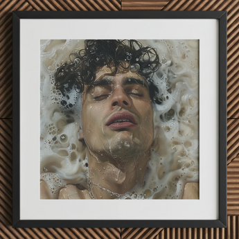 A theater of dreams wet his whistle. A tide swells inside as shadowy lovers glide over private reveries. A crescendo of gay desire mounting with each pulse and quiver. His curls soaked in sensuality. Surrendering to the embrace of the warm, milky water.