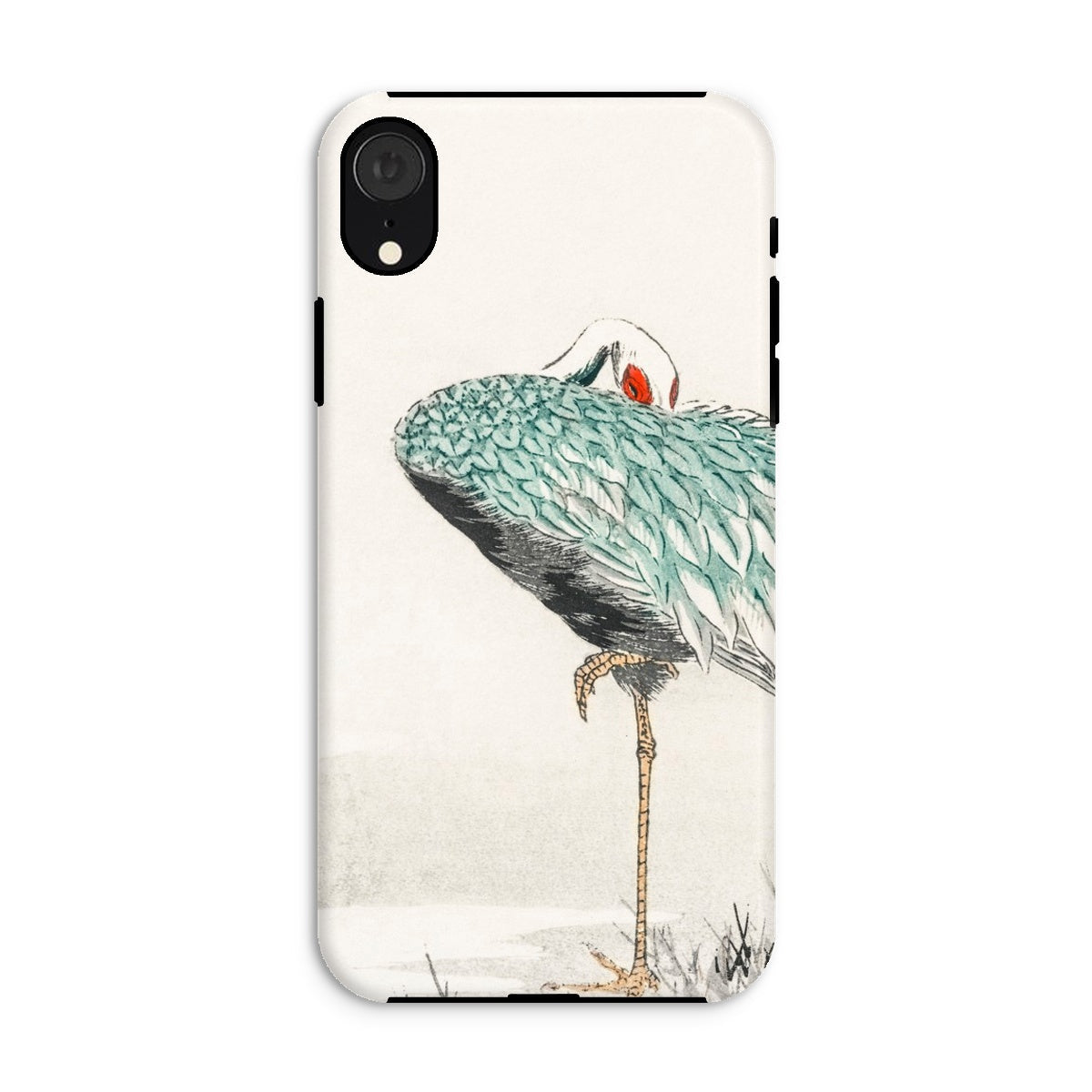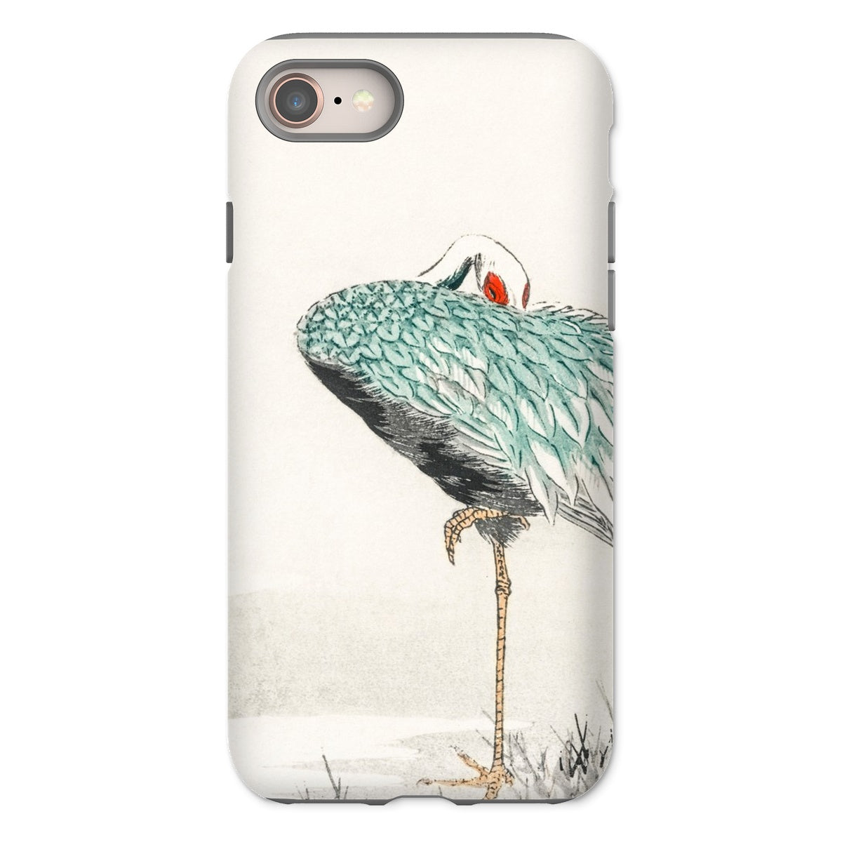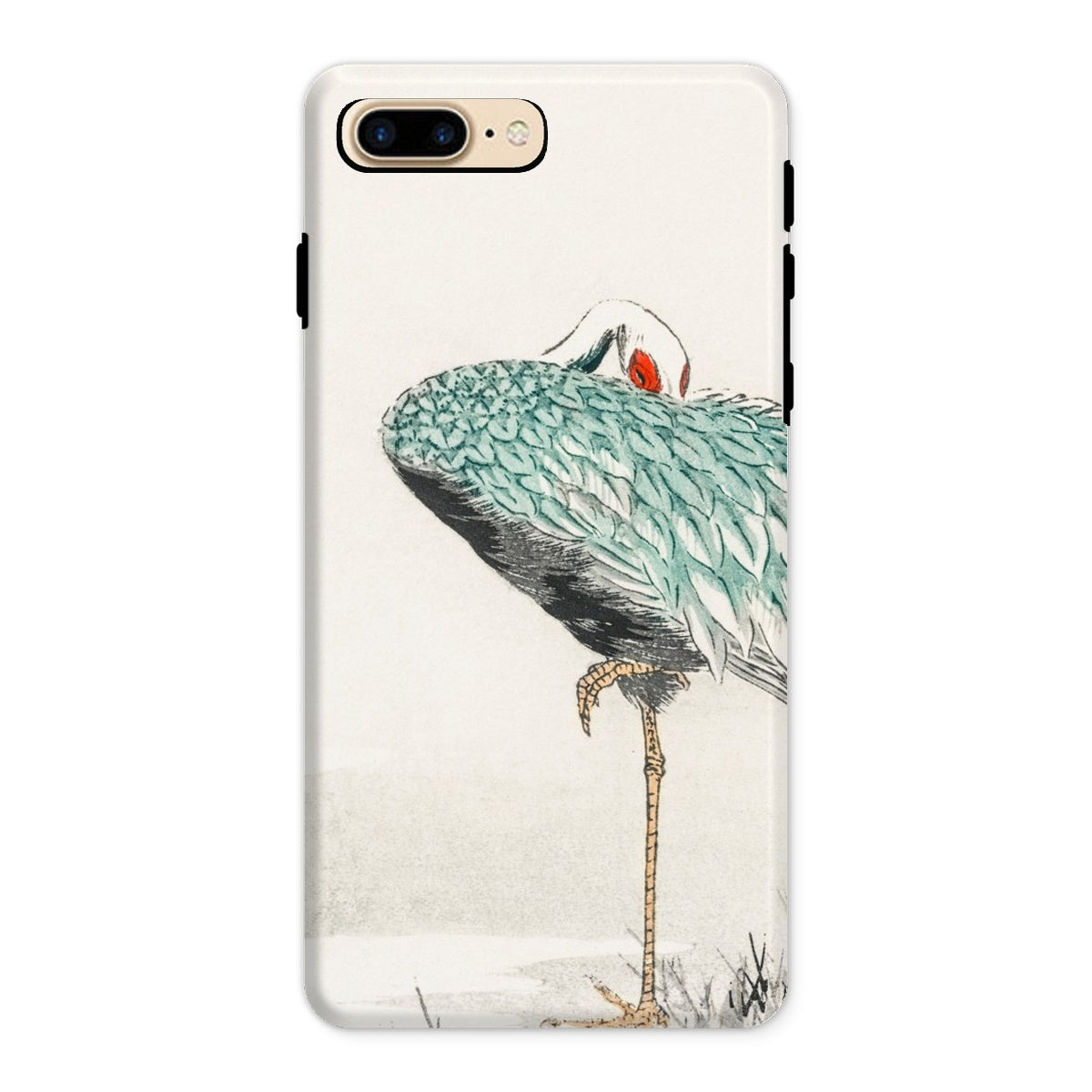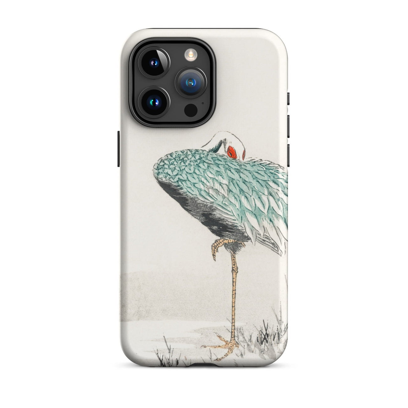 Feathered phantasm on your fingertips, Numata Kashu's crane struts digital realms. White-naped wonder, emerald-scaled enigma, perches on iPhone's edge. You, modern samurai, wield art's katana - slicing through mundane tech with Meiji-era mojo.