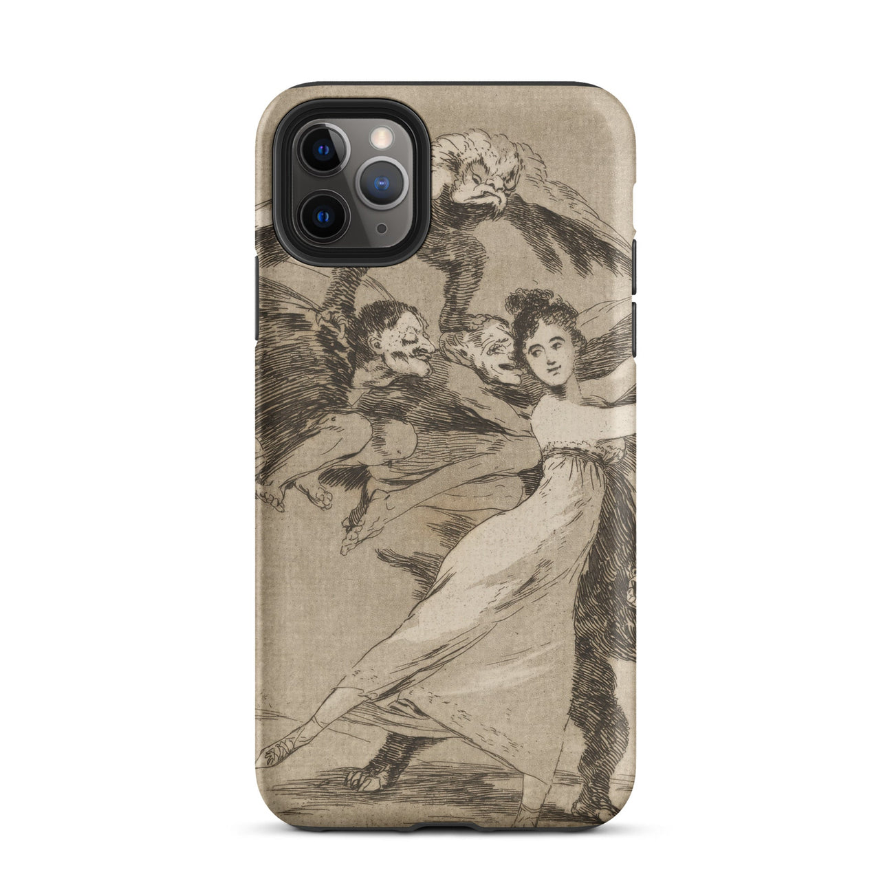 Francisco Goya’s You Will Not Escape turns this iPhone case into a dark stage where menace closes in. A young woman twists mid-stride, her dress caught in the pull of monstrous figures who swarm with predatory grip. Their faces leer, exaggerated by biting etch lines, while her wide-eyed stare holds the tension between resistance and inevitability.